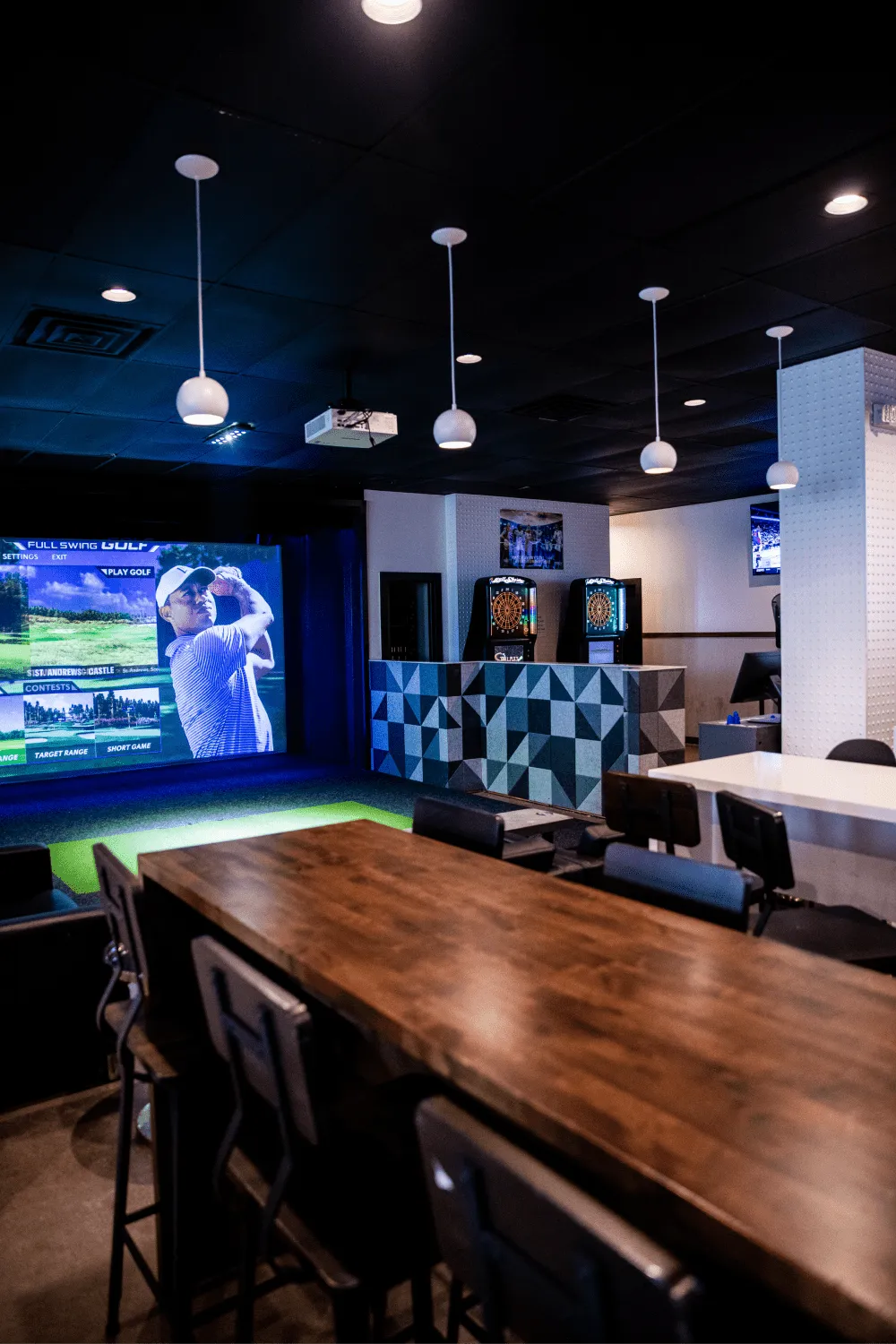 Indoor Sims. Duckpin Bowling. AR Darts. Games. Drinks. Food.